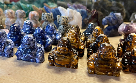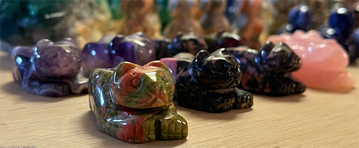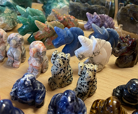 We sell raw minerals, in their natural form as well as tumbled and carved, like: