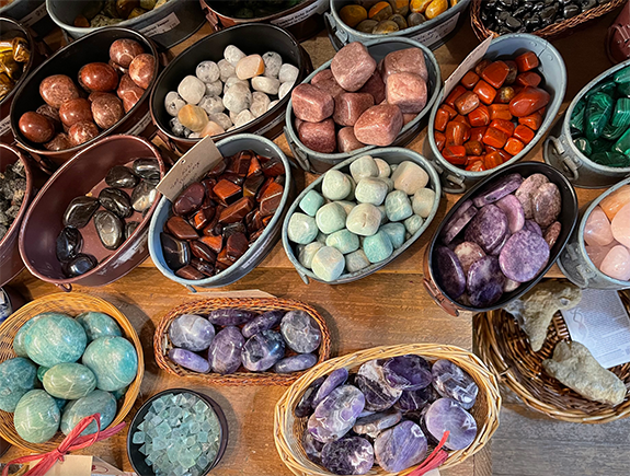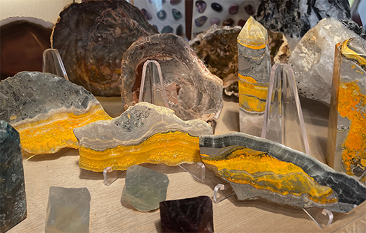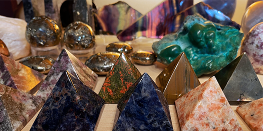 Check out our lush selection of polished, tumbled and carved rocks and mineral specimens! We have shapes including smooth slabs, pyramids, spheres, points and columns.